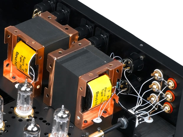 1. 脱胎换骨升级使用宽频响,大变比,低相移A类单端输出变压器(频宽:5Hz-80kHz -1dB,变比:25:1,相移<5度)耦合。