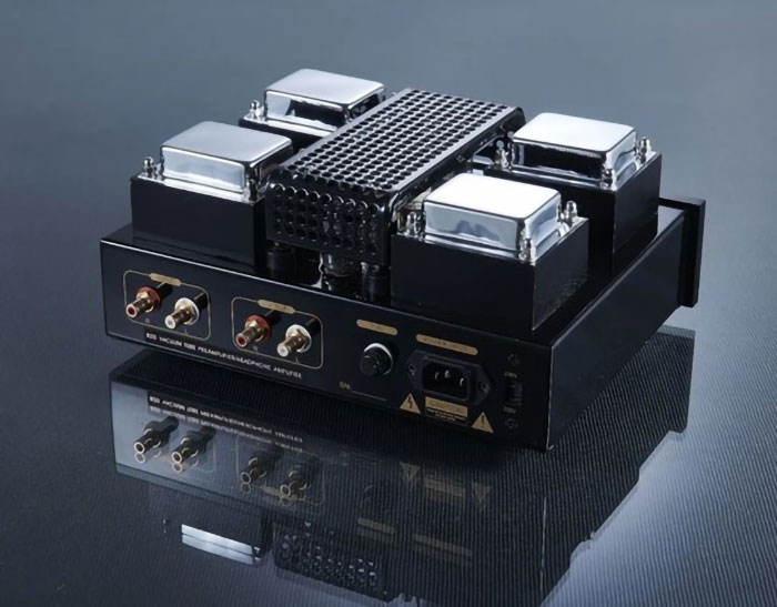 该机采用12Ax7做前级和倒相,12AU7做A类放大,双单声道设计,每声独立供电。